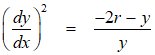 The constants a and g are both positive. This is the square of the derivative. It is undefined for y ≥ 0, and for y < -a2/(2g). Now, we look at the cycloid. A cycloid is usually pictured as the path of a point on a circle that is rolling along the ground like a wheel. This time, it is rolling on the ceiling, the x-axis. It starts at