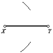 2. Place the compass at point X. Adjust the compass radius so that it is more than (1/2)XY. Draw two arcs as shown here. |