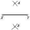 3. Without changing the compass radius, place the compass on point Y. Draw two arcs intersecting the previously drawn arcs. Label the intersection points A and B. |