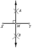 4. Using the straightedge, draw line AB. Label the intersection point M. Point M is the midpoint of line segment XY, and line AB is perpendicular to line segment XY. |
