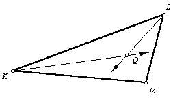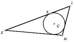 2. Construct the bisectors of Ð K and Ð L. (Refer to the angle bisector construction.) Let point Q be the intersection of the two angle bisectors. |