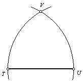 3. Keeping the same radius, center the compass at point U and draw another arc intersecting the first one. Let point V be the point of intersection. |
