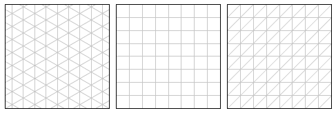 Some pages were later added to the document to facilitate printing isometric, square, or oblique grid paper. These grids are for printing only. There are no axes or custom tools. Each page has the same three parameters: width, height, and interval. They control the dimensions of the frame and the spacing between gridlines. There has been a minor change in the interpretation of the interval on the isometric grid. I discovered that my interpretation of grid spacing was inconsistent with standard practice. Where it used to be the distance between adjacent grid intersections, it is now the distance between consecutive vertical lines on all three of the grids.