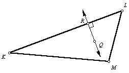 3. Construct a line through point Q, perpendicular to line segment KL. Let point R be the point of intersection. (Refer to the construction of a perpendicular line through a given point.) |