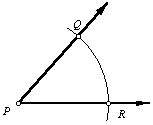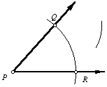 1. Let point P be the vertex of the angle. Place the compass on point P and draw an arc across both sides of the angle. Label the intersection points Q and R. |