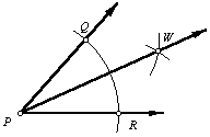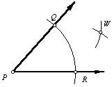 4. Using the straightedge, draw ray PW. This is the bisector of ÐQPR. |