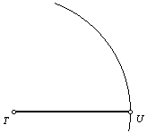 2. Center the compass at point T, and set the compass radius to TU. Draw an arc as shown. |