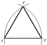 3. Keeping the same radius, center the compass at point U and draw another arc intersecting the first one. Let point V be the point of intersection. |