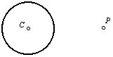 1. Begin with a circle centered on point C. Point P is on the exterior of the circle. |